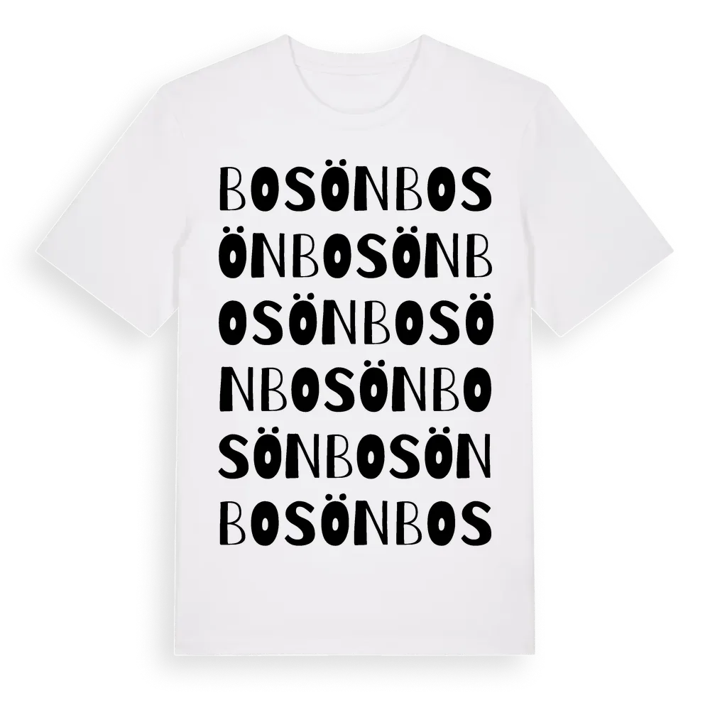 Bosön ordlek t-shirt är inspirerad av byn Bosön i Stockholms län, Sverige. Tröjan är designad för dig som har en speciell koppling till platsen – oavsett om du bor här, har rötterna här eller bara älskar Bosön.
