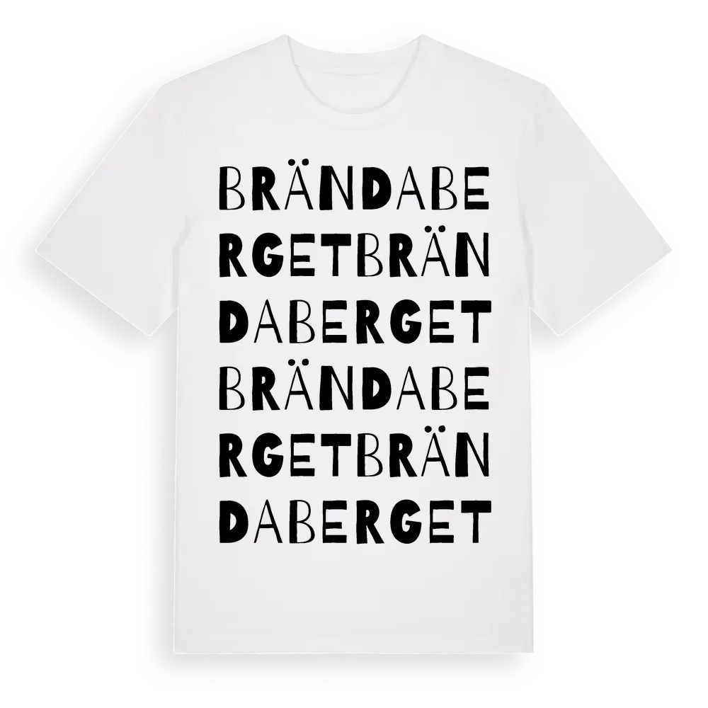 Brända Berget ordlek t-shirt är inspirerad av Brända Berget i Stockholms län, Sverige. Tröjan är designad för dig som har en speciell koppling till platsen – oavsett om du bor här, har rötterna här eller bara älskar Brända Berget.