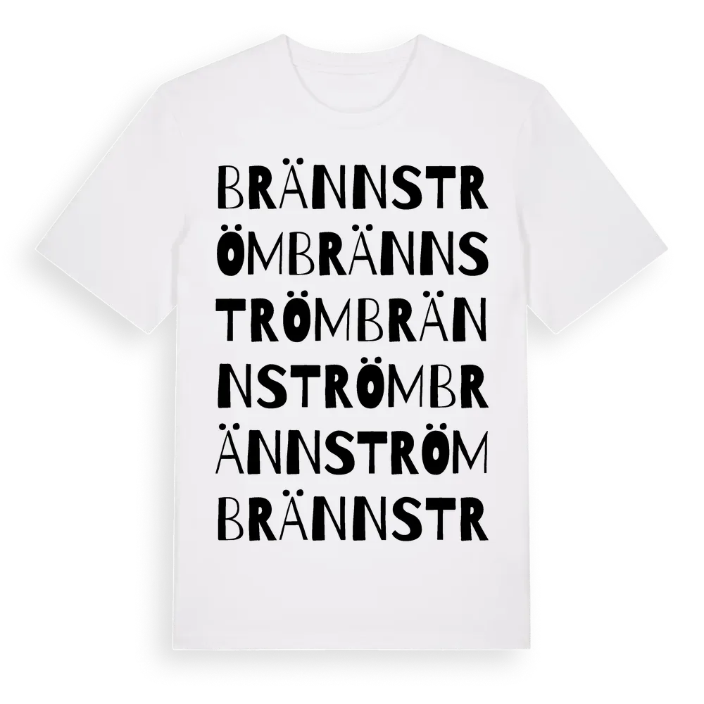 Brännström ordlek t-shirt är inspirerad av byn Brännström i Stockholms län, Sverige. Tröjan är designad för dig som har en speciell koppling till platsen – oavsett om du bor här, har rötterna här eller bara älskar Brännström.