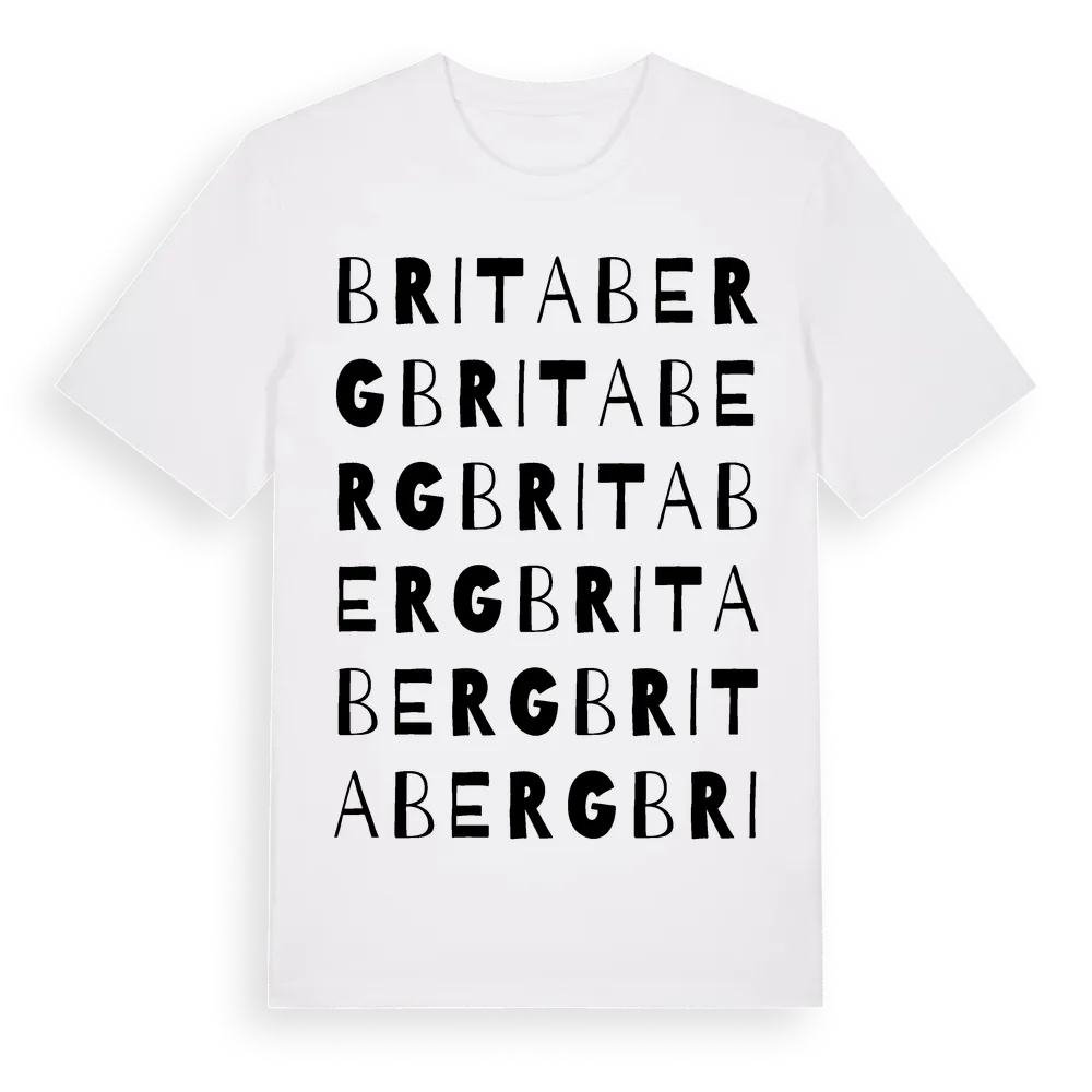 Britaberg ordlek t-shirt är inspirerad av Britaberg i Stockholms län, Sverige. Tröjan är designad för dig som har en speciell koppling till platsen – oavsett om du bor här, har rötterna här eller bara älskar Britaberg.