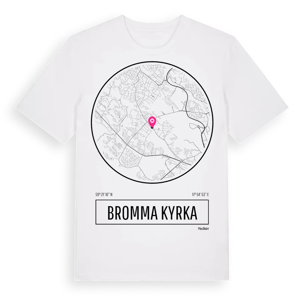 Bromma Kyrka t-shirt är inspirerad av stadsdelen Bromma Kyrka i Stockholms län, Sverige. Tröjan är designad för dig som har en speciell koppling till platsen – oavsett om du bor här, har rötterna här eller bara älskar Bromma Kyrka.