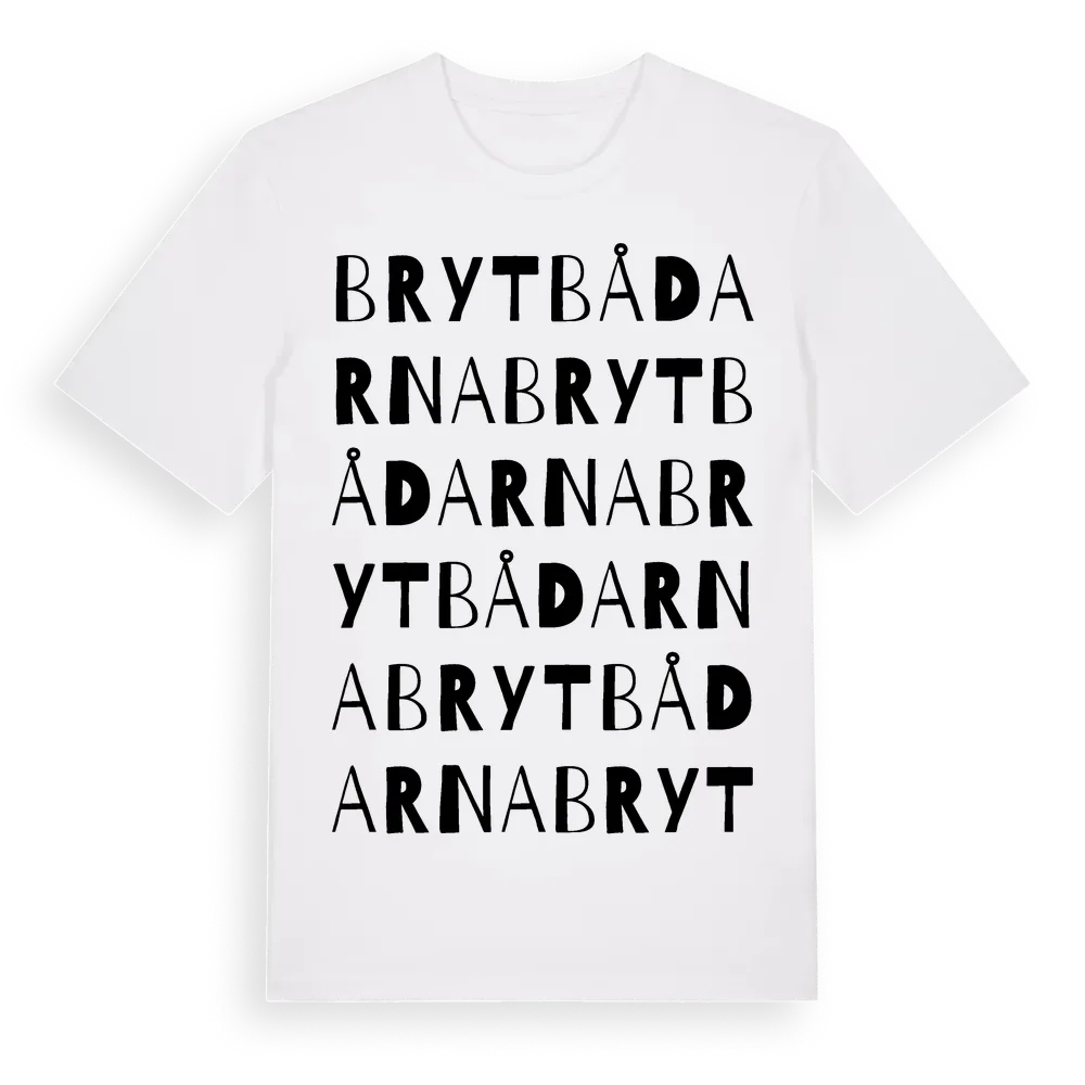 Brytbådarna ordlek t-shirt är inspirerad av Brytbådarna i Stockholms län, Sverige. Tröjan är designad för dig som har en speciell koppling till platsen – oavsett om du bor här, har rötterna här eller bara älskar Brytbådarna.