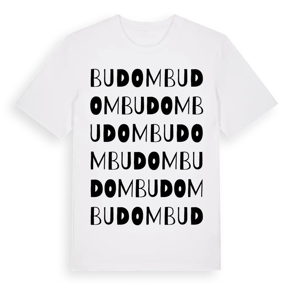 Budom ordlek t-shirt är inspirerad av Budom i Stockholms län, Sverige. Tröjan är designad för dig som har en speciell koppling till platsen – oavsett om du bor här, har rötterna här eller bara älskar Budom.