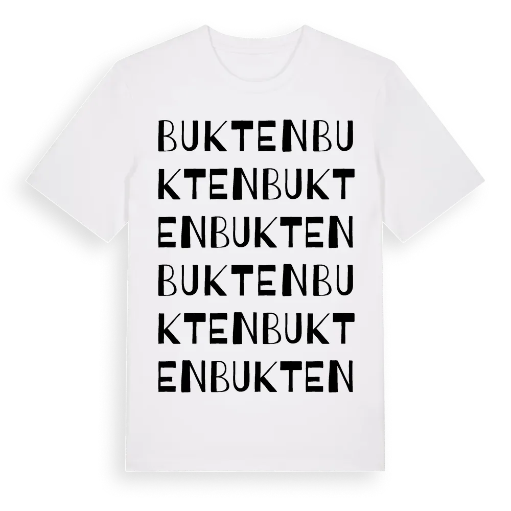 En ordlek byggd på Buktens namn. Subtilt och klurig – ett motiv som bara de som verkligen känner platsen fullt ut förstår. Premium bomull, unisex – från Bukten i Stockholms län.