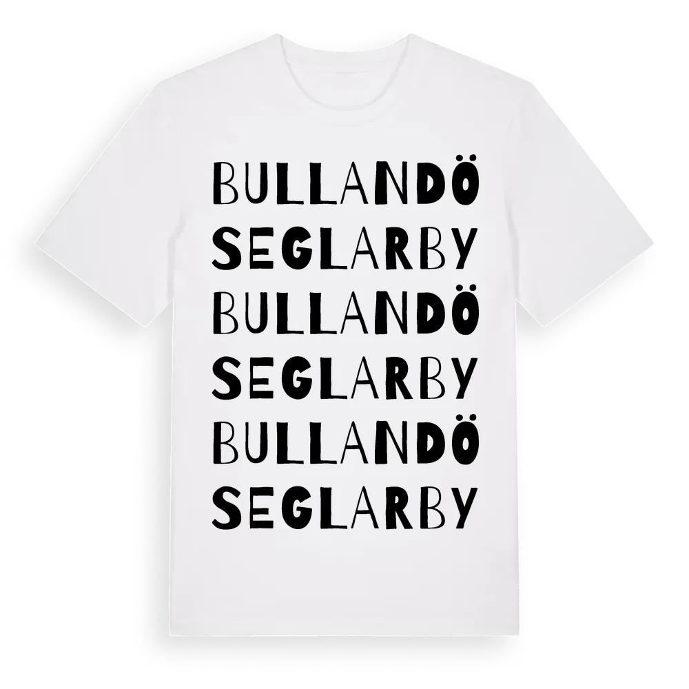 En ordlek byggd på Bullandö Seglarbys namn. Subtilt och klurig – ett motiv som bara de som verkligen känner platsen fullt ut förstår. Premium bomull, unisex – från stadsdelen Bullandö Seglarby i Stockholms län.