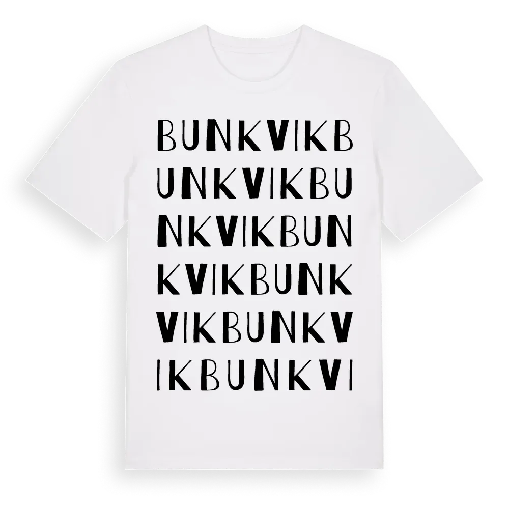 Bunkvik ordlek t-shirt är inspirerad av byn Bunkvik i Stockholms län, Sverige. Tröjan är designad för dig som har en speciell koppling till platsen – oavsett om du bor här, har rötterna här eller bara älskar Bunkvik.