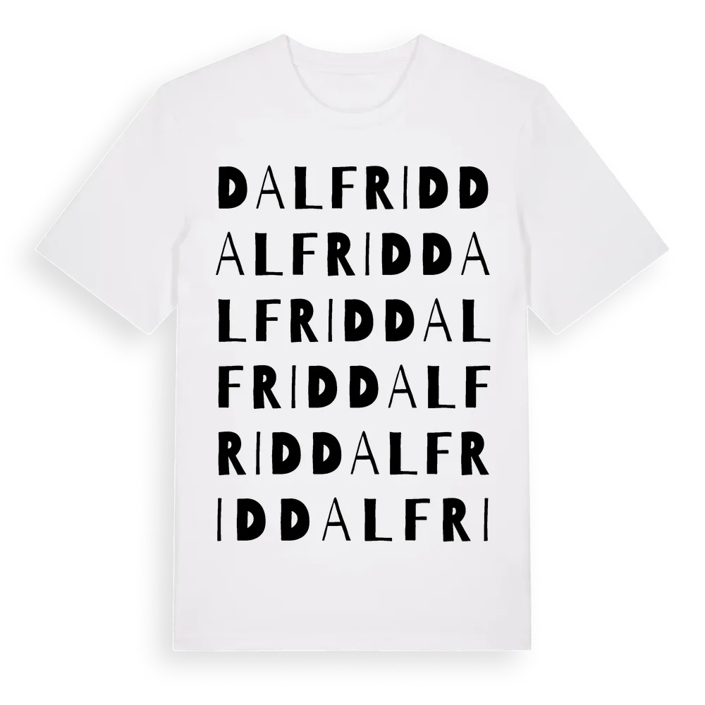 Dalfrid ordlek t-shirt är inspirerad av byn Dalfrid i Stockholms län, Sverige. Tröjan är designad för dig som har en speciell koppling till platsen – oavsett om du bor här, har rötterna här eller bara älskar Dalfrid.