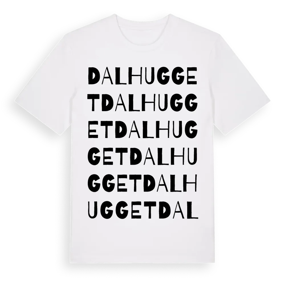 Dalhugget ordlek t-shirt är inspirerad av Dalhugget i Stockholms län, Sverige. Tröjan är designad för dig som har en speciell koppling till platsen – oavsett om du bor här, har rötterna här eller bara älskar Dalhugget.