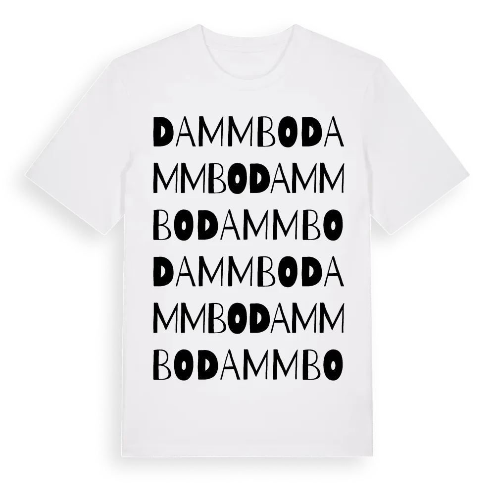 En ordlek byggd på Dammbos namn. Subtilt och klurig – ett motiv som bara de som verkligen känner platsen fullt ut förstår. Premium bomull, unisex – från Dammbo i Stockholms län.