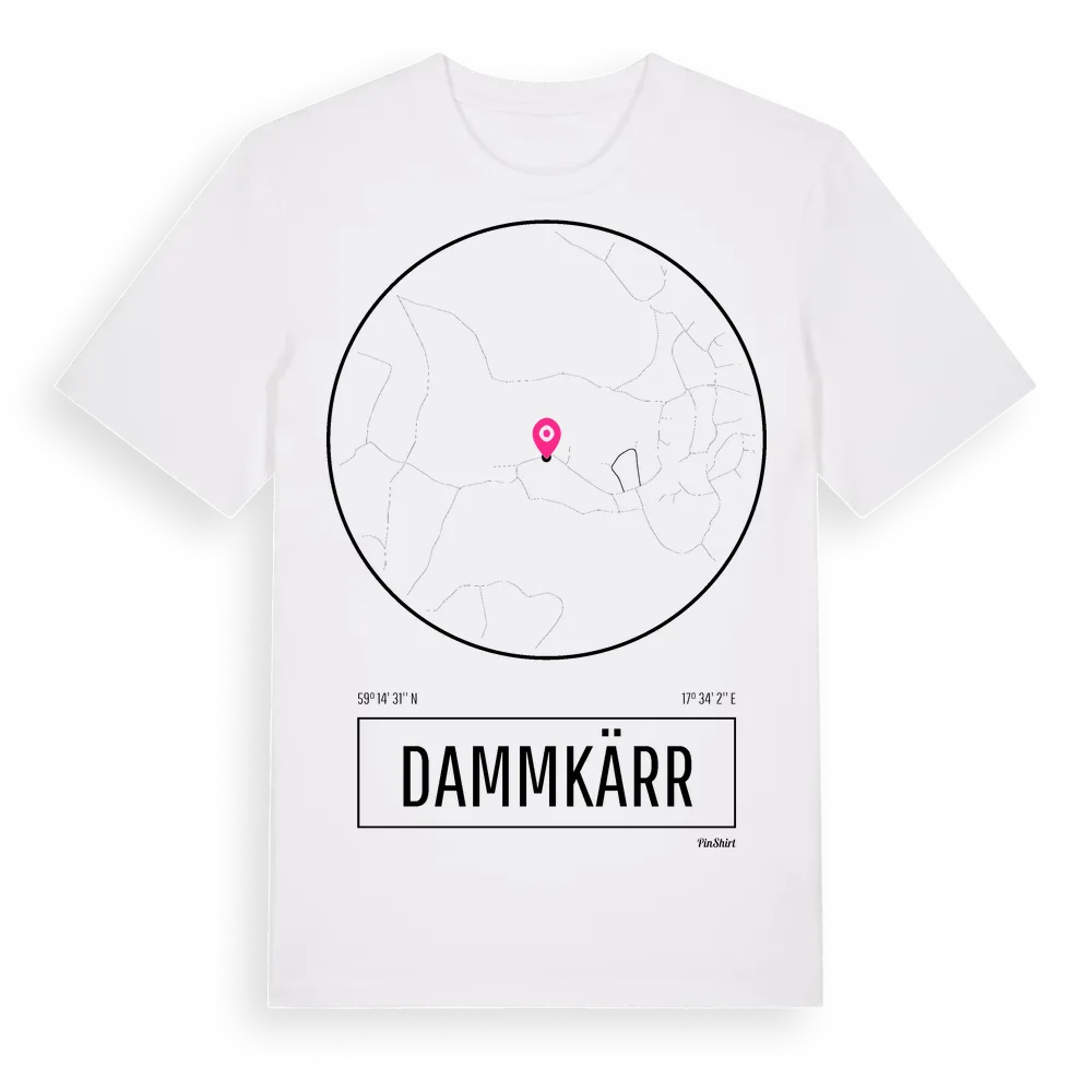 Dammkärr t-shirt är inspirerad av stadsdelen Dammkärr i Stockholms län, Sverige. Tröjan är designad för dig som har en speciell koppling till platsen – oavsett om du bor här, har rötterna här eller bara älskar Dammkärr.