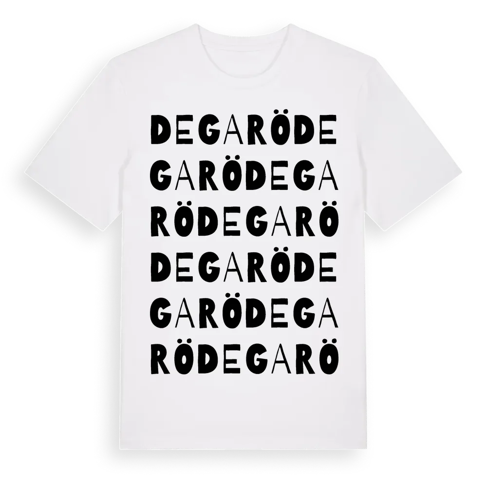 En ordlek byggd på Degarös namn. Subtilt och klurig – ett motiv som bara de som verkligen känner platsen fullt ut förstår. Premium bomull, unisex – från Degarö i Stockholms län.