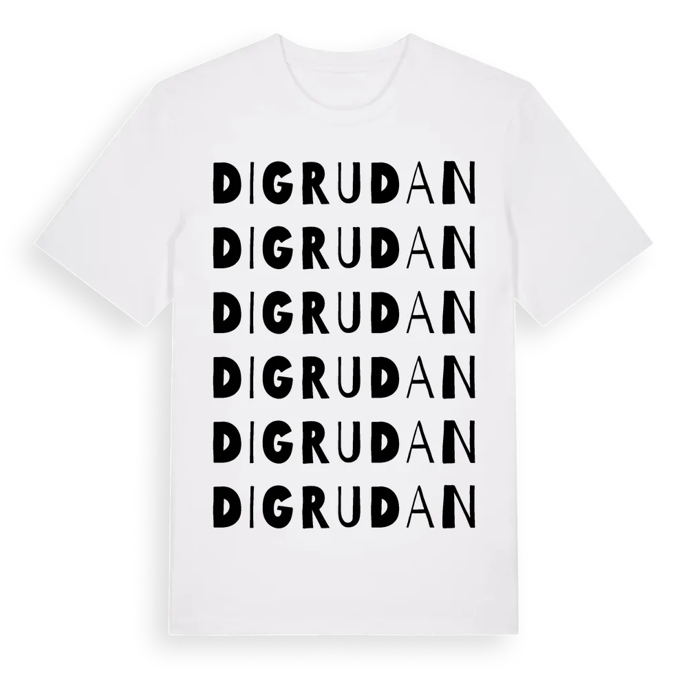 Digrudan ordlek t-shirt är inspirerad av Digrudan i Stockholms län, Sverige. Tröjan är designad för dig som har en speciell koppling till platsen – oavsett om du bor här, har rötterna här eller bara älskar Digrudan.