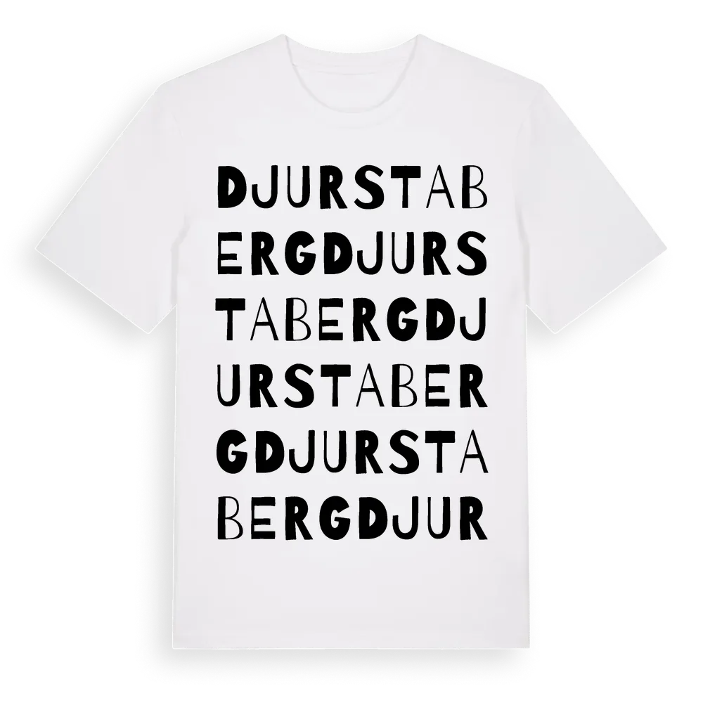 Djurstaberg ordlek t-shirt är inspirerad av Djurstaberg i Stockholms län, Sverige. Tröjan är designad för dig som har en speciell koppling till platsen – oavsett om du bor här, har rötterna här eller bara älskar Djurstaberg.