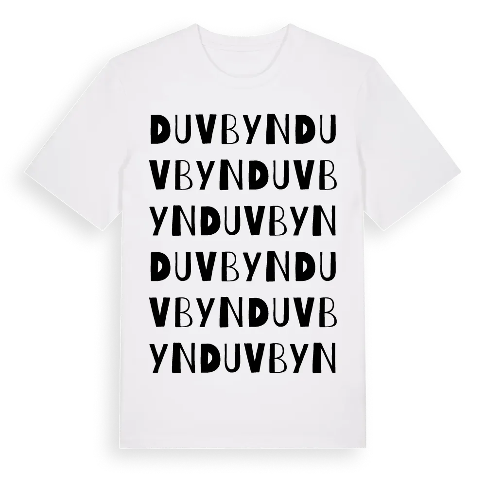 Duvbyn ordlek t-shirt är inspirerad av Duvbyn i Stockholms län, Sverige. Tröjan är designad för dig som har en speciell koppling till platsen – oavsett om du bor här, har rötterna här eller bara älskar Duvbyn.