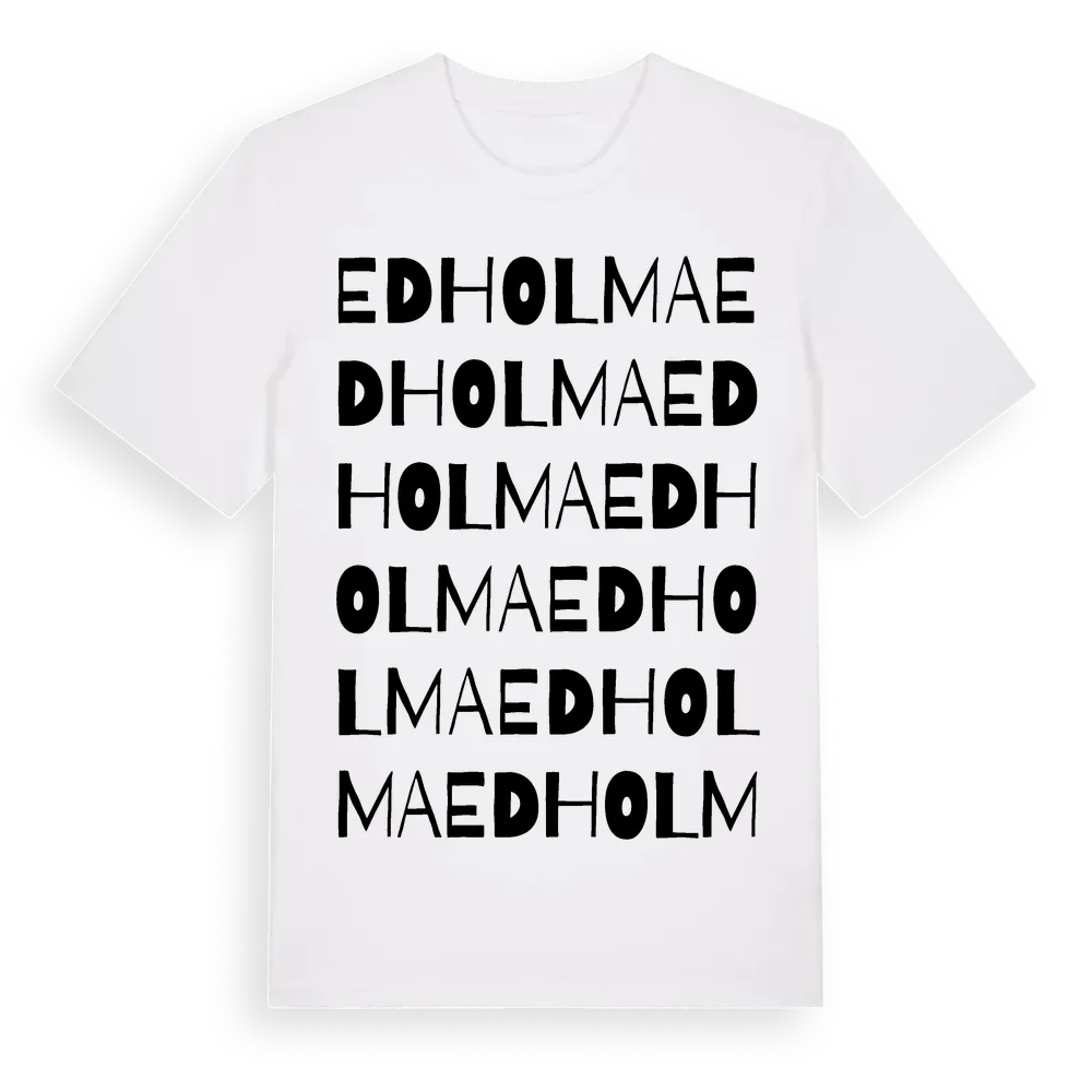 Edholma ordlek t-shirt är inspirerad av ön Edholma i Stockholms län, Sverige. Tröjan är designad för dig som har en speciell koppling till platsen – oavsett om du bor här, har rötterna här eller bara älskar Edholma.
