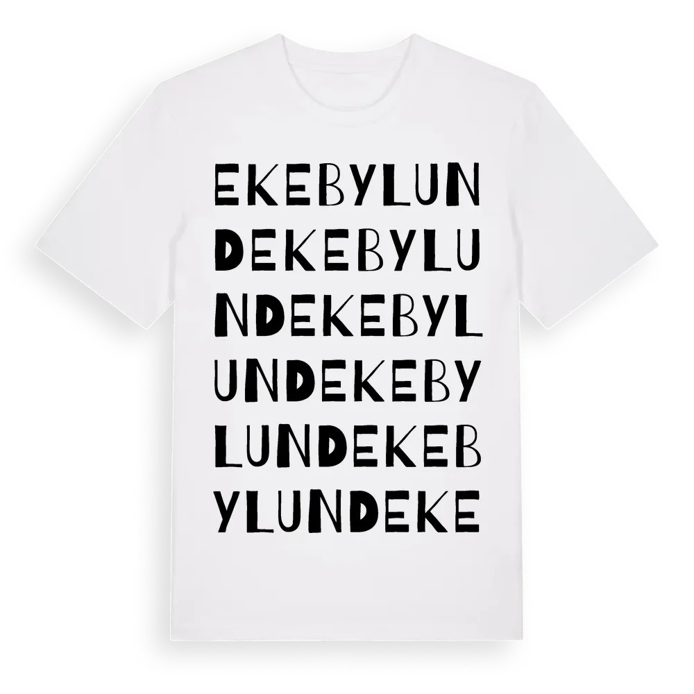 Ekebylund ordlek t-shirt är inspirerad av Ekebylund i Stockholms län, Sverige. Tröjan är designad för dig som har en speciell koppling till platsen – oavsett om du bor här, har rötterna här eller bara älskar Ekebylund.