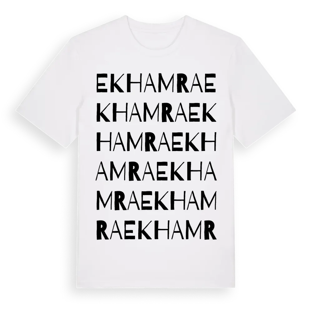 Ekhamra ordlek t-shirt är inspirerad av byn Ekhamra i Stockholms län, Sverige. Tröjan är designad för dig som har en speciell koppling till platsen – oavsett om du bor här, har rötterna här eller bara älskar Ekhamra.
