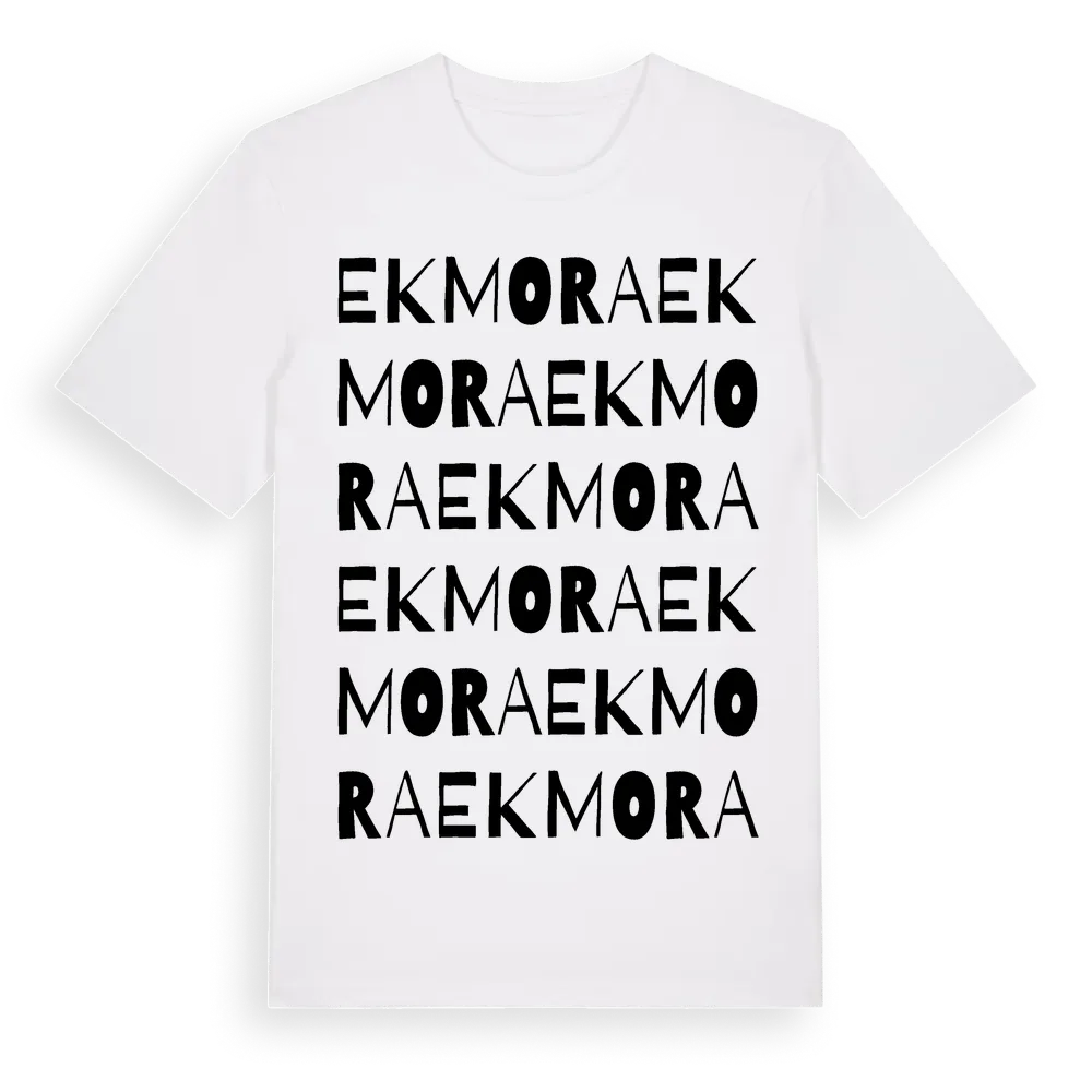 Ekmora ordlek t-shirt är inspirerad av Ekmora i Stockholms län, Sverige. Tröjan är designad för dig som har en speciell koppling till platsen – oavsett om du bor här, har rötterna här eller bara älskar Ekmora.