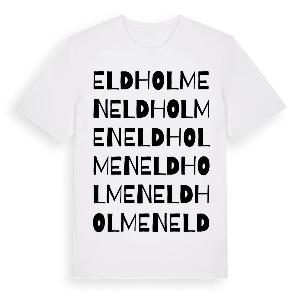 Eldholmen ordlek t-shirt är inspirerad av Eldholmen i Stockholms län, Sverige. Tröjan är designad för dig som har en speciell koppling till platsen – oavsett om du bor här, har rötterna här eller bara älskar Eldholmen.