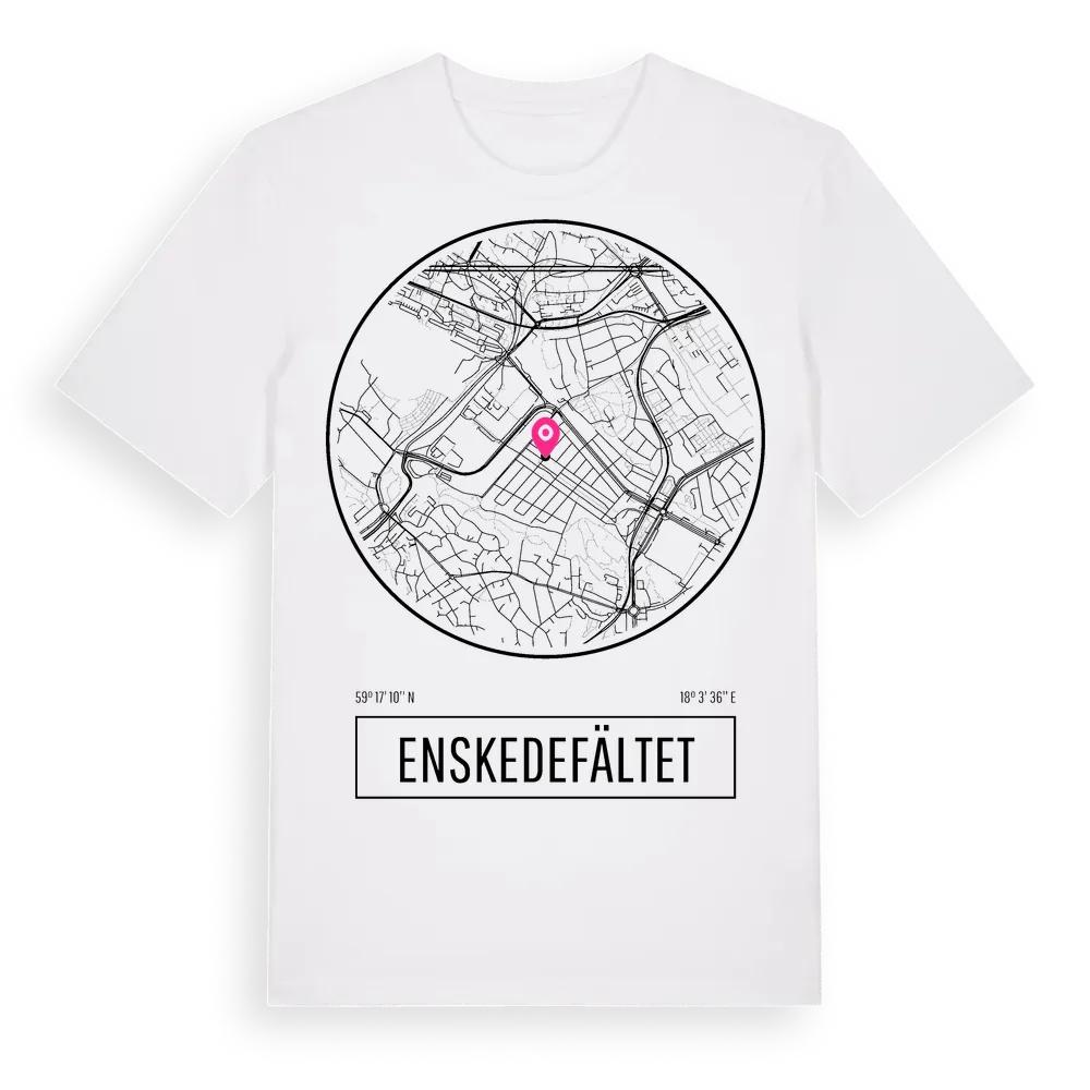 Ett rent, runt tryck med Enskedefältets namn. Minimalistiskt och stilrent – perfekt för den som känner platsen utan att skrika det. Premium bomull, unisex – från Enskedefältet i Stockholms län.