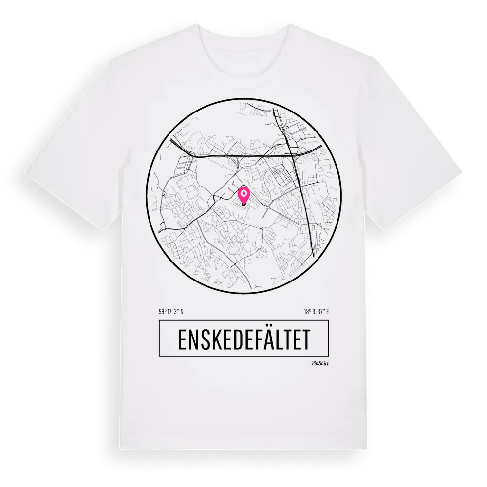 Enskedefältet t-shirt är inspirerad av stadsdelen Enskedefältet i Stockholms län, Sverige. Tröjan är designad för dig som har en speciell koppling till platsen – oavsett om du bor här, har rötterna här eller bara älskar Enskedefältet.