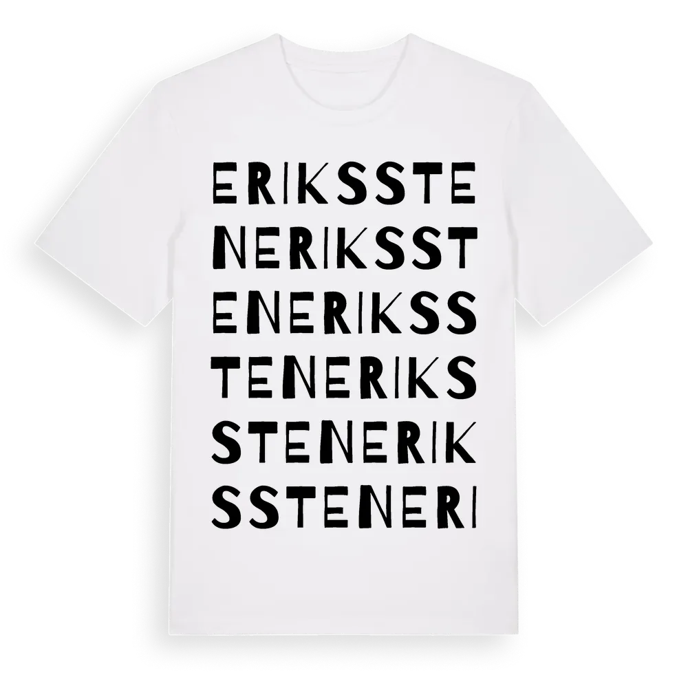 Erikssten ordlek t-shirt är inspirerad av stadsdelen Erikssten i Stockholms län, Sverige. Tröjan är designad för dig som har en speciell koppling till platsen – oavsett om du bor här, har rötterna här eller bara älskar Erikssten.