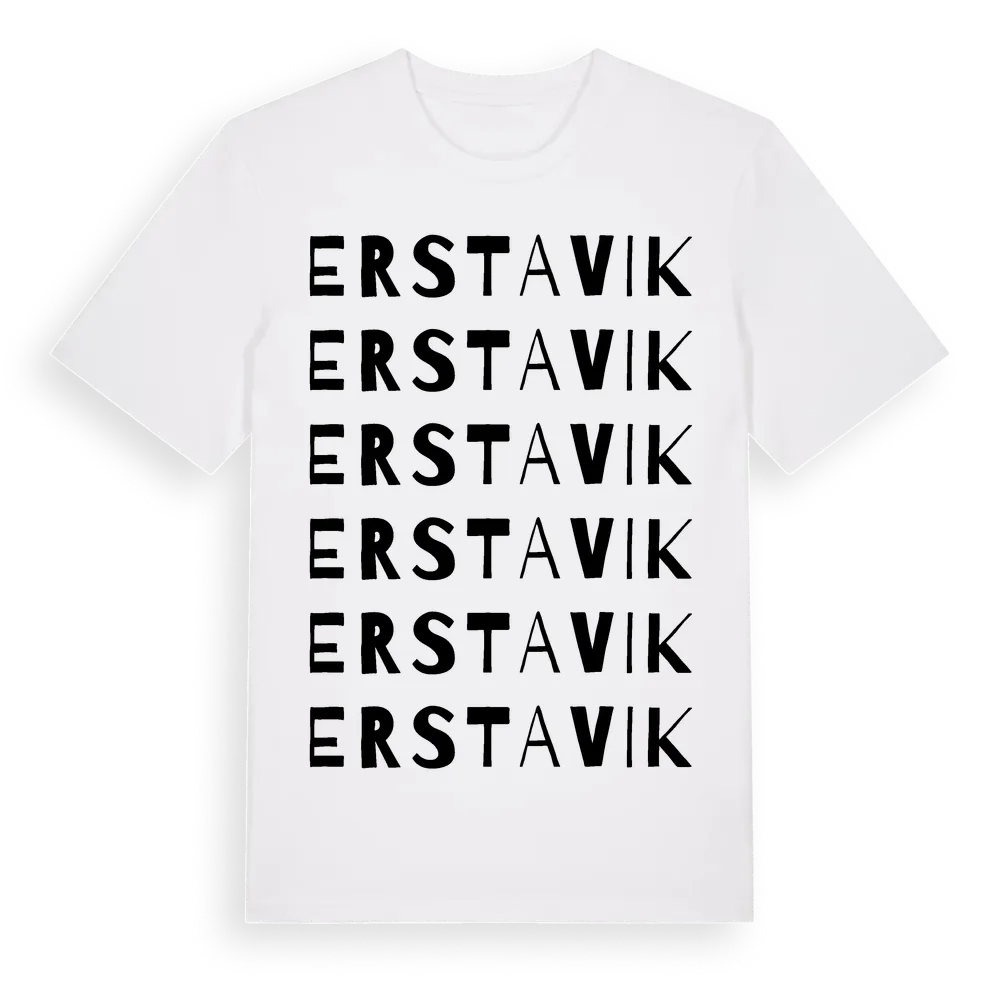 En ordlek byggd på Erstaviks namn. Subtilt och klurig – ett motiv som bara de som verkligen känner platsen fullt ut förstår. Premium bomull, unisex – från byn Erstavik i Stockholms län.