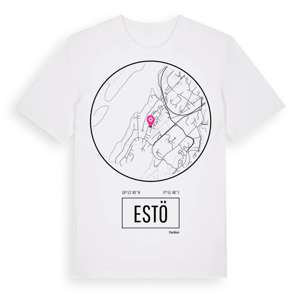 Estö t-shirt är inspirerad av stadsdelen Estö i Stockholms län, Sverige. Tröjan är designad för dig som har en speciell koppling till platsen – oavsett om du bor här, har rötterna här eller bara älskar Estö.