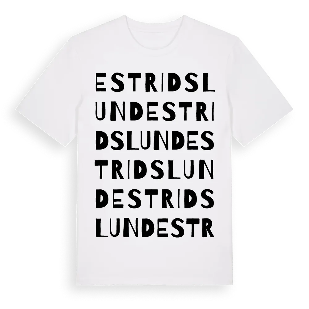 Estridslund ordlek t-shirt är inspirerad av Estridslund i Stockholms län, Sverige. Tröjan är designad för dig som har en speciell koppling till platsen – oavsett om du bor här, har rötterna här eller bara älskar Estridslund.