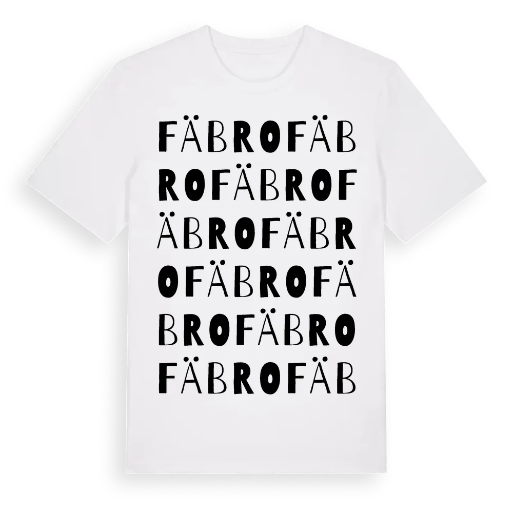 Fäbro ordlek t-shirt är inspirerad av Fäbro i Stockholms län, Sverige. Tröjan är designad för dig som har en speciell koppling till platsen – oavsett om du bor här, har rötterna här eller bara älskar Fäbro.