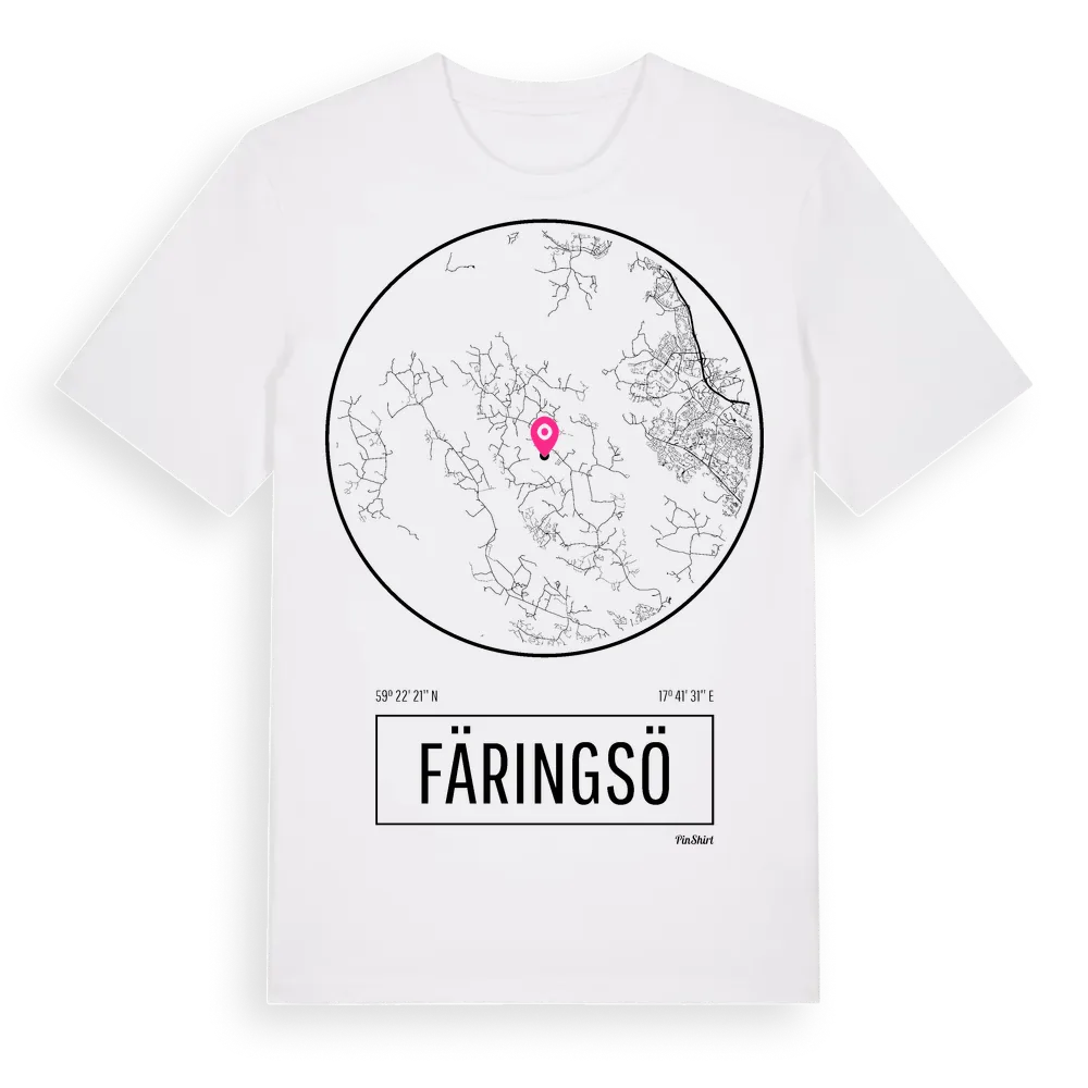 Färingsö t-shirt är inspirerad av ön Färingsö i Stockholms län, Sverige. Tröjan är designad för dig som har en speciell koppling till platsen – oavsett om du bor här, har rötterna här eller bara älskar Färingsö.