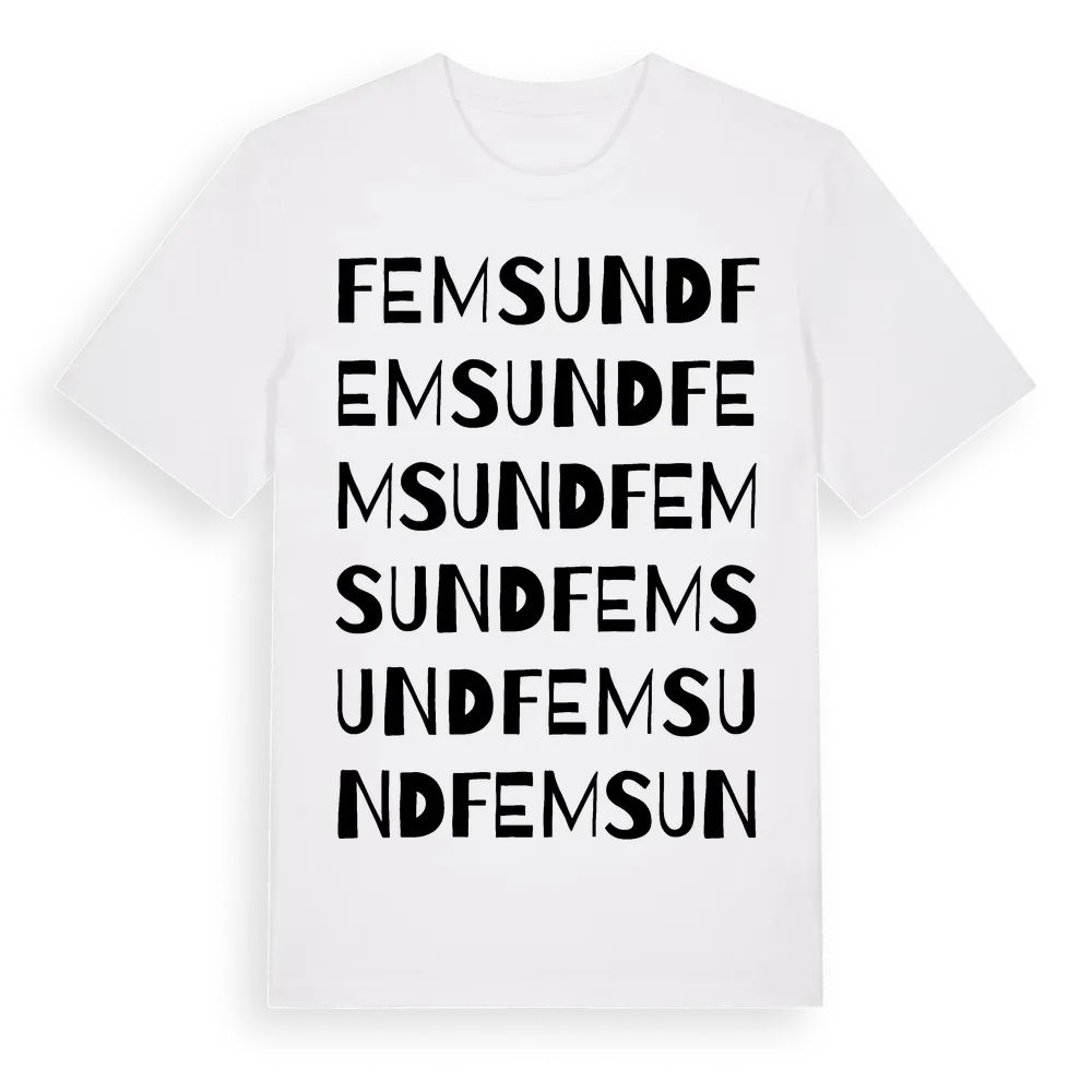Femsund ordlek t-shirt är inspirerad av byn Femsund i Stockholms län, Sverige. Tröjan är designad för dig som har en speciell koppling till platsen – oavsett om du bor här, har rötterna här eller bara älskar Femsund.