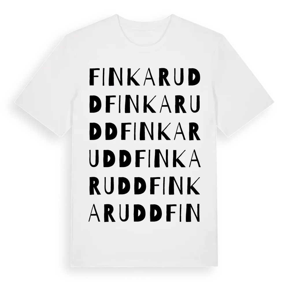 Finkarudd ordlek t-shirt är inspirerad av Finkarudd i Stockholms län, Sverige. Tröjan är designad för dig som har en speciell koppling till platsen – oavsett om du bor här, har rötterna här eller bara älskar Finkarudd.