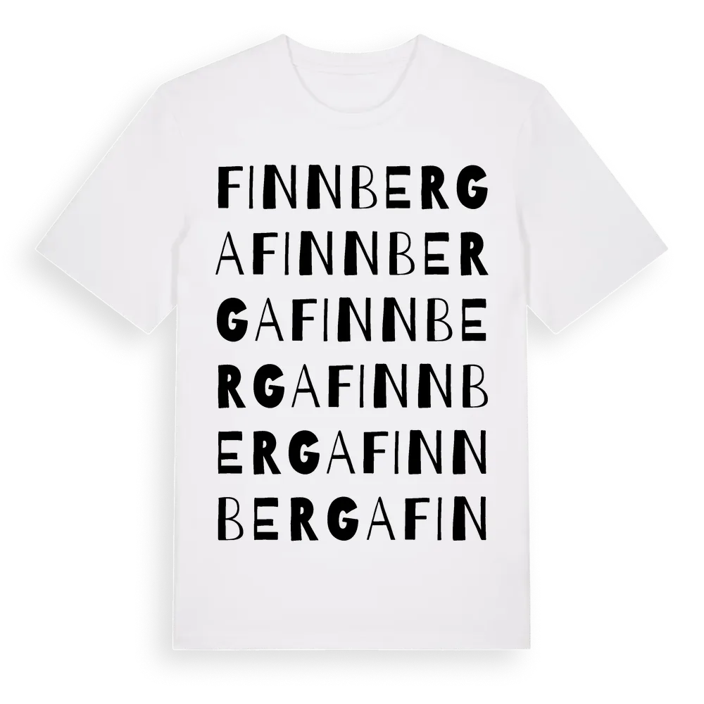 Finnberga ordlek t-shirt är inspirerad av Finnberga i Stockholms län, Sverige. Tröjan är designad för dig som har en speciell koppling till platsen – oavsett om du bor här, har rötterna här eller bara älskar Finnberga.