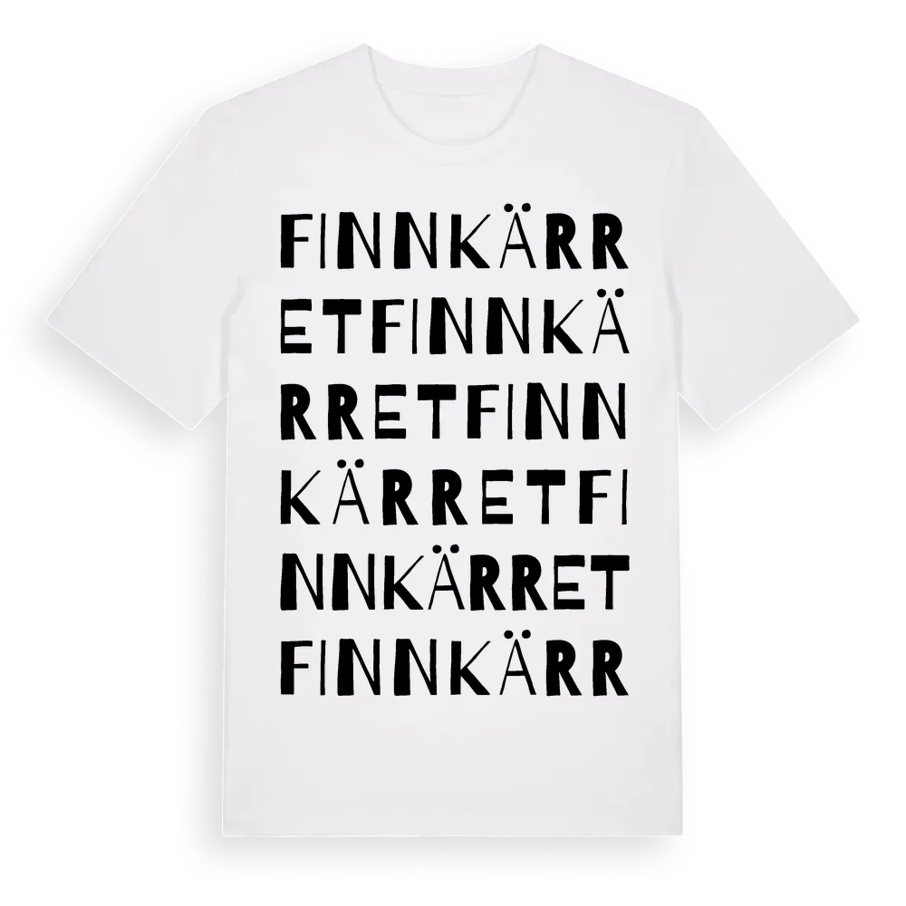 Finnkärret ordlek t-shirt är inspirerad av Finnkärret i Stockholms län, Sverige. Tröjan är designad för dig som har en speciell koppling till platsen – oavsett om du bor här, har rötterna här eller bara älskar Finnkärret.
