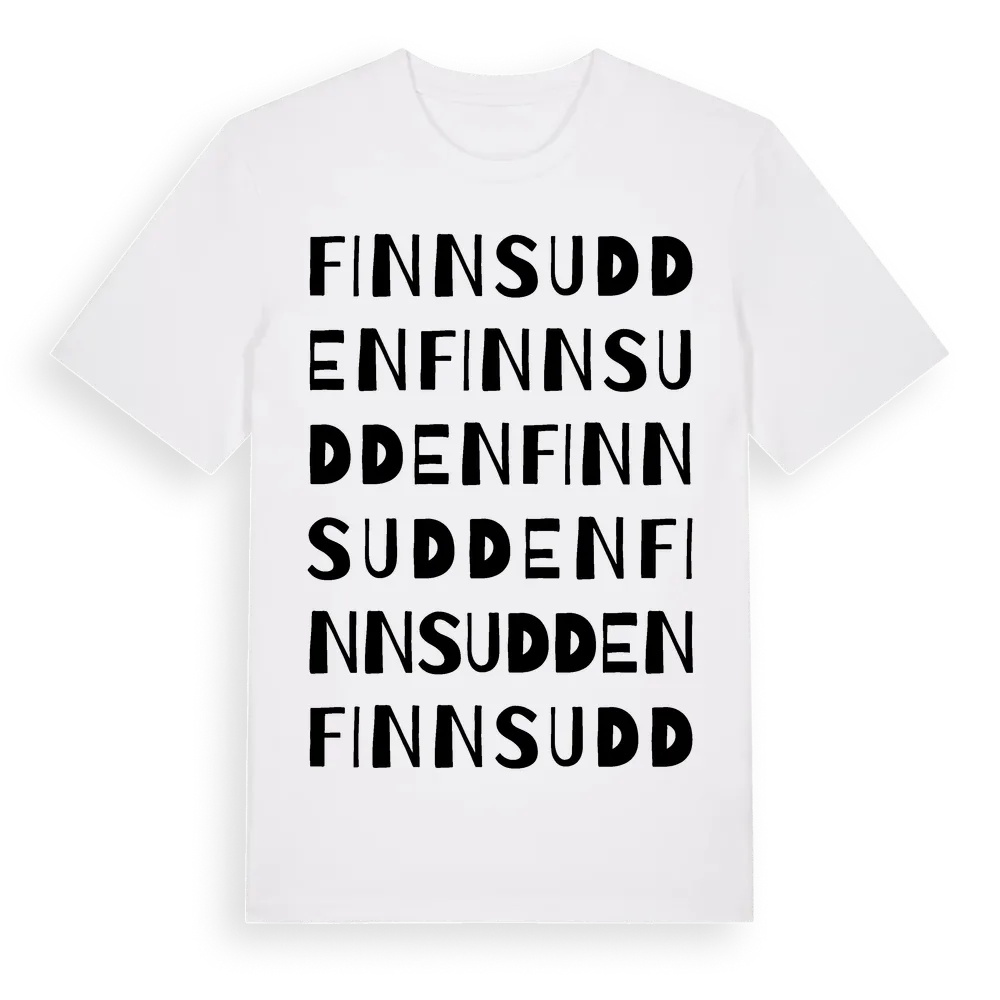 Finnsudden ordlek t-shirt är inspirerad av Finnsudden i Stockholms län, Sverige. Tröjan är designad för dig som har en speciell koppling till platsen – oavsett om du bor här, har rötterna här eller bara älskar Finnsudden.