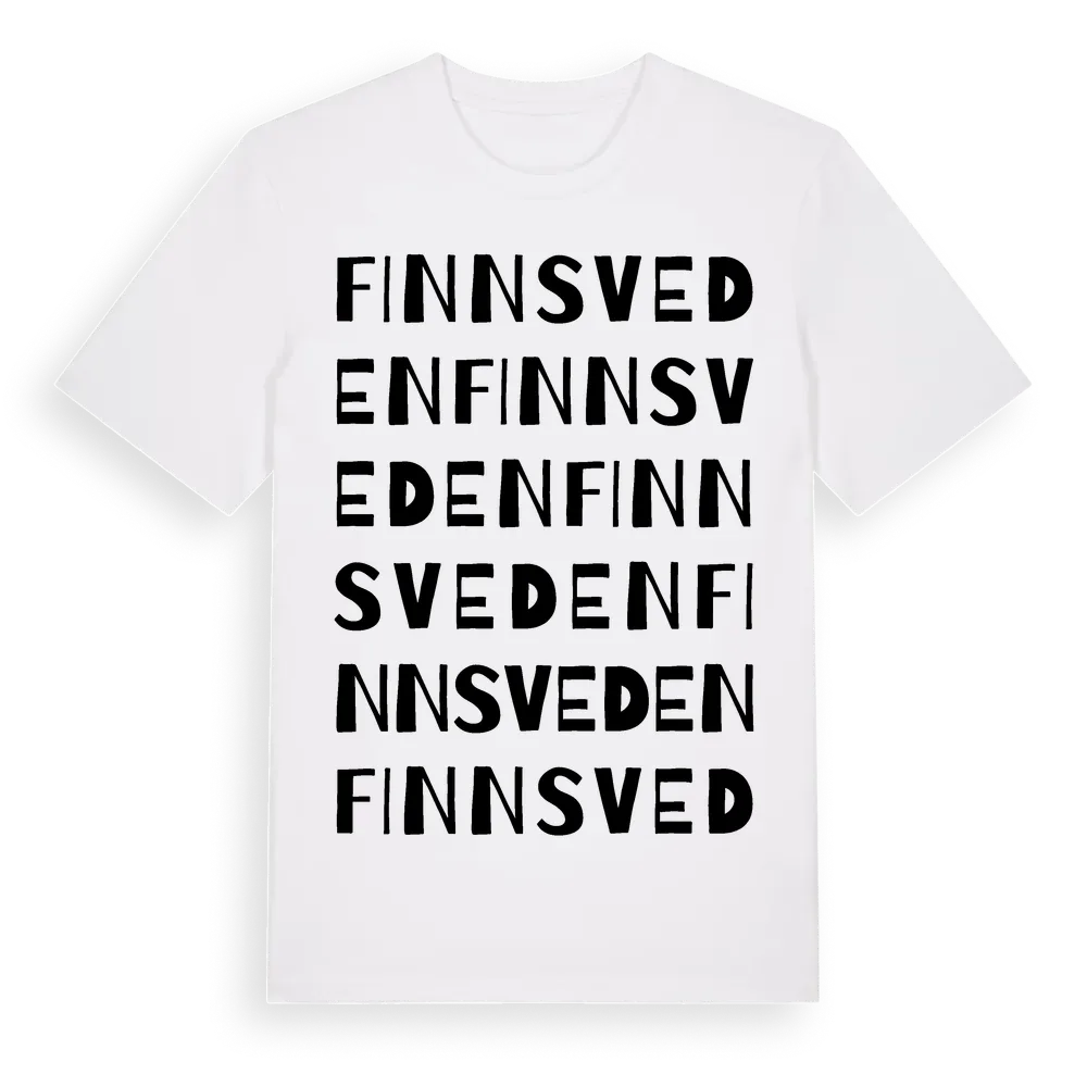 Finnsveden ordlek t-shirt är inspirerad av byn Finnsveden i Stockholms län, Sverige. Tröjan är designad för dig som har en speciell koppling till platsen – oavsett om du bor här, har rötterna här eller bara älskar Finnsveden.