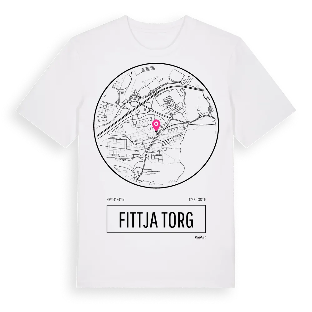 Fittja Torg t-shirt är inspirerad av Fittja Torg i Stockholms län, Sverige. Tröjan är designad för dig som har en speciell koppling till platsen – oavsett om du bor här, har rötterna här eller bara älskar Fittja Torg.
