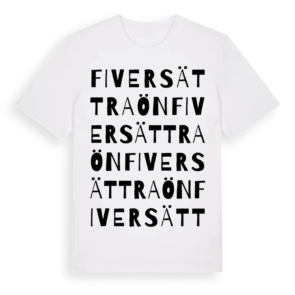 Fiversättraön ordlek t-shirt är inspirerad av ön Fiversättraön i Stockholms län, Sverige. Tröjan är designad för dig som har en speciell koppling till platsen – oavsett om du bor här, har rötterna här eller bara älskar Fiversättraön.