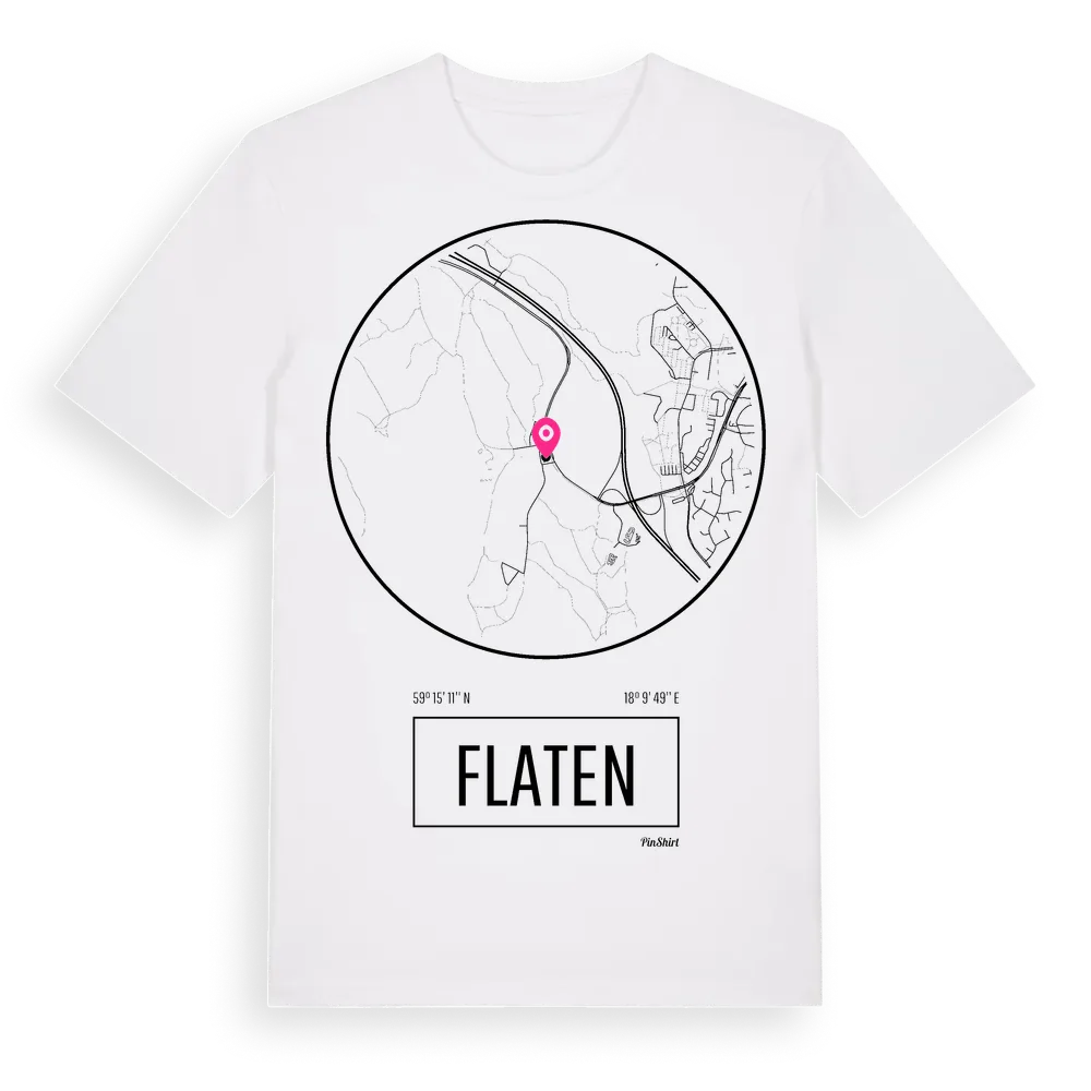 Flaten t-shirt är inspirerad av stadsdelen Flaten i Stockholms län, Sverige. Tröjan är designad för dig som har en speciell koppling till platsen – oavsett om du bor här, har rötterna här eller bara älskar Flaten.