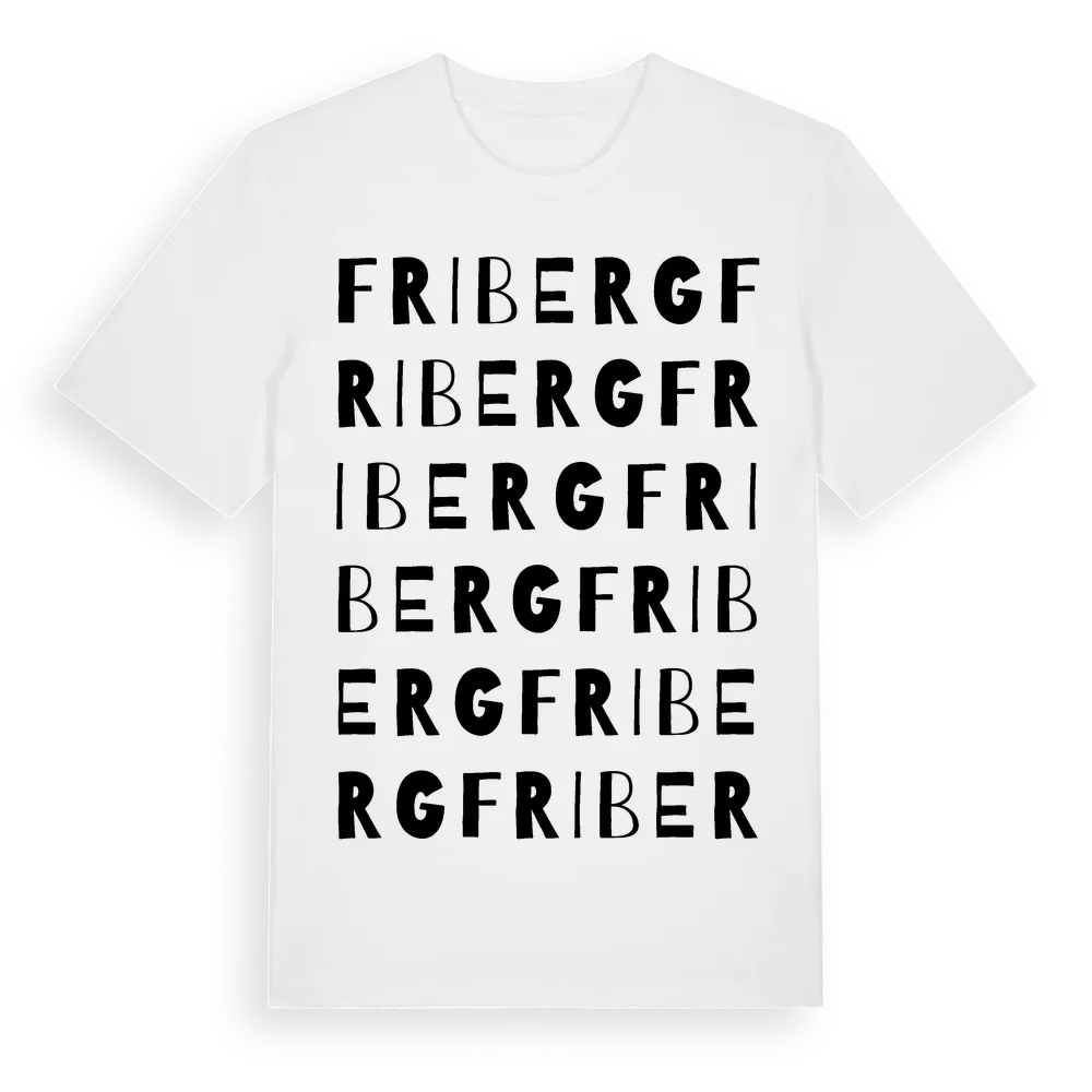Friberg ordlek t-shirt är inspirerad av Friberg i Stockholms län, Sverige. Tröjan är designad för dig som har en speciell koppling till platsen – oavsett om du bor här, har rötterna här eller bara älskar Friberg.