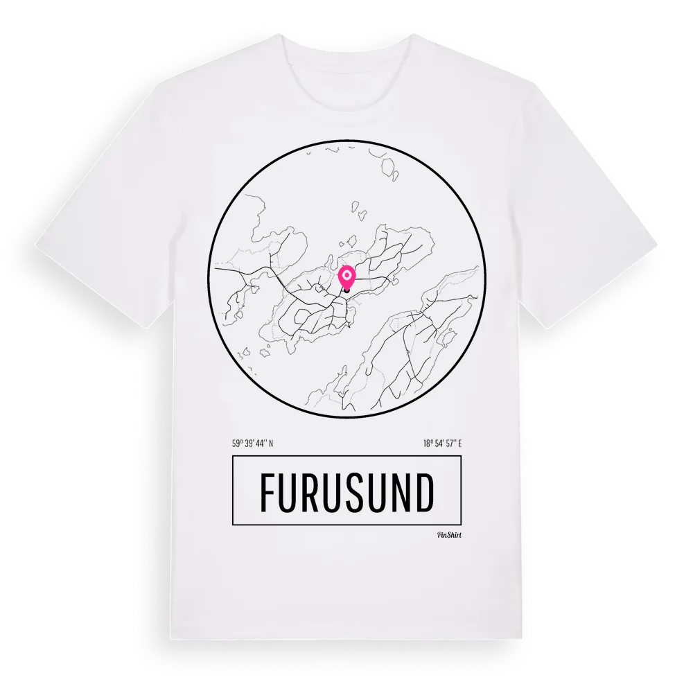 Furusund t-shirt är inspirerad av ön Furusund i Stockholms län, Sverige. Tröjan är designad för dig som har en speciell koppling till platsen – oavsett om du bor här, har rötterna här eller bara älskar Furusund.