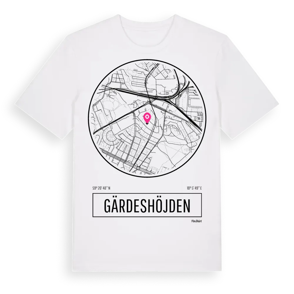 Gärdeshöjden t-shirt är inspirerad av stadsdelen Gärdeshöjden i Stockholms län, Sverige. Tröjan är designad för dig som har en speciell koppling till platsen – oavsett om du bor här, har rötterna här eller bara älskar Gärdeshöjden.