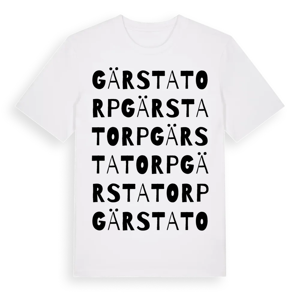 Gärstatorp ordlek t-shirt är inspirerad av Gärstatorp i Stockholms län, Sverige. Tröjan är designad för dig som har en speciell koppling till platsen – oavsett om du bor här, har rötterna här eller bara älskar Gärstatorp.