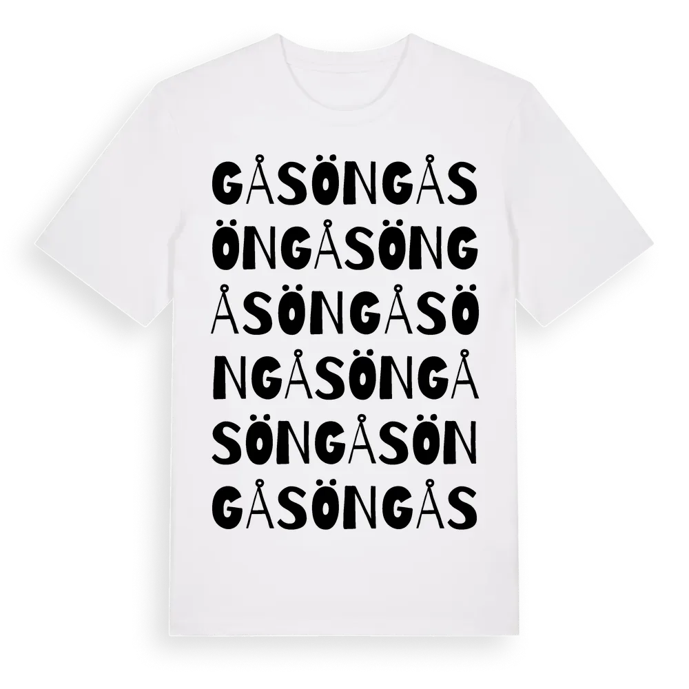 Gåsön ordlek t-shirt är inspirerad av ön Gåsön i Stockholms län, Sverige. Tröjan är designad för dig som har en speciell koppling till platsen – oavsett om du bor här, har rötterna här eller bara älskar Gåsön.