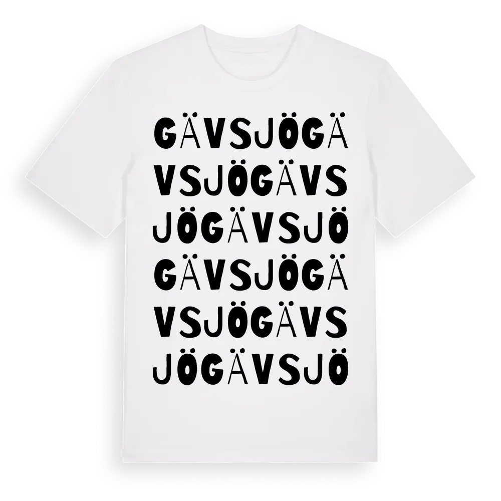 Gävsjö ordlek t-shirt är inspirerad av byn Gävsjö i Stockholms län, Sverige. Tröjan är designad för dig som har en speciell koppling till platsen – oavsett om du bor här, har rötterna här eller bara älskar Gävsjö.