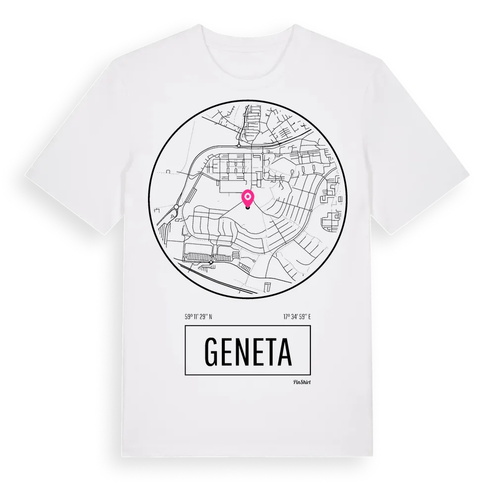 Geneta t-shirt är inspirerad av stadsdelen Geneta i Stockholms län, Sverige. Tröjan är designad för dig som har en speciell koppling till platsen – oavsett om du bor här, har rötterna här eller bara älskar Geneta.