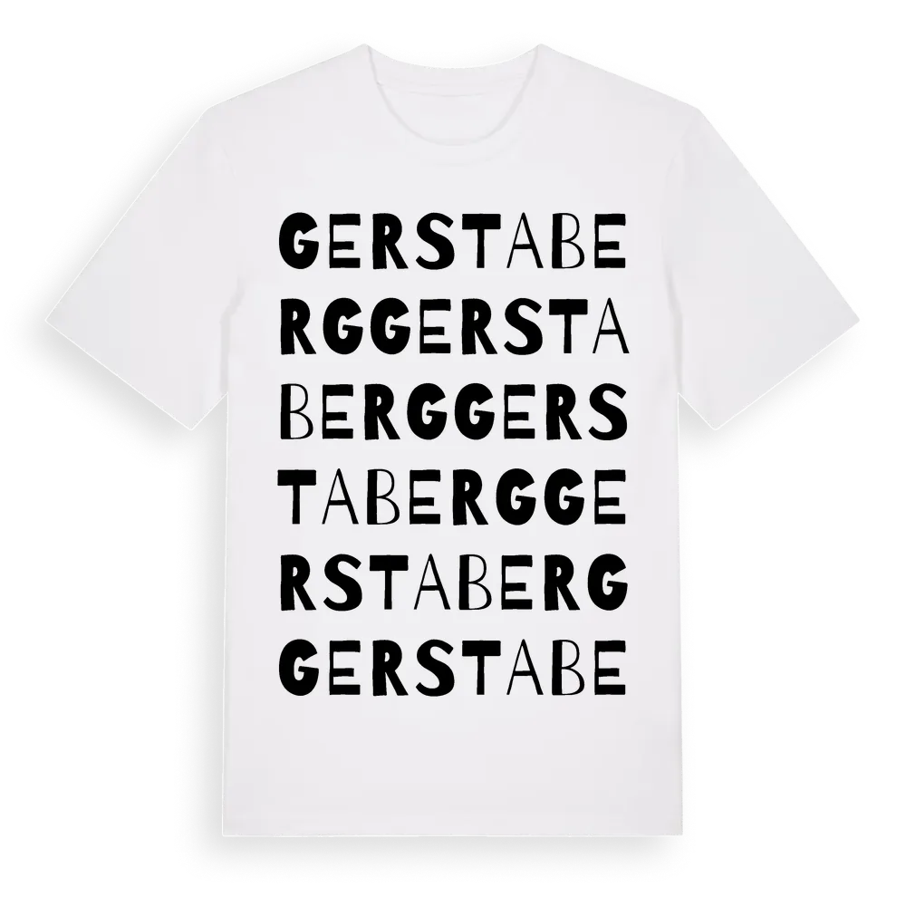 Gerstaberg ordlek t-shirt är inspirerad av byn Gerstaberg i Stockholms län, Sverige. Tröjan är designad för dig som har en speciell koppling till platsen – oavsett om du bor här, har rötterna här eller bara älskar Gerstaberg.