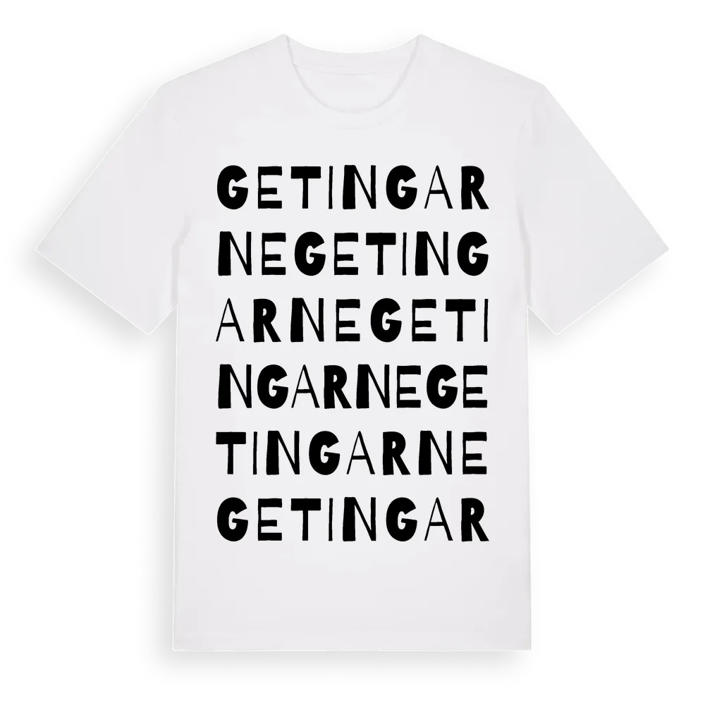 Getingarne ordlek t-shirt är inspirerad av byn Getingarne i Stockholms län, Sverige. Tröjan är designad för dig som har en speciell koppling till platsen – oavsett om du bor här, har rötterna här eller bara älskar Getingarne.