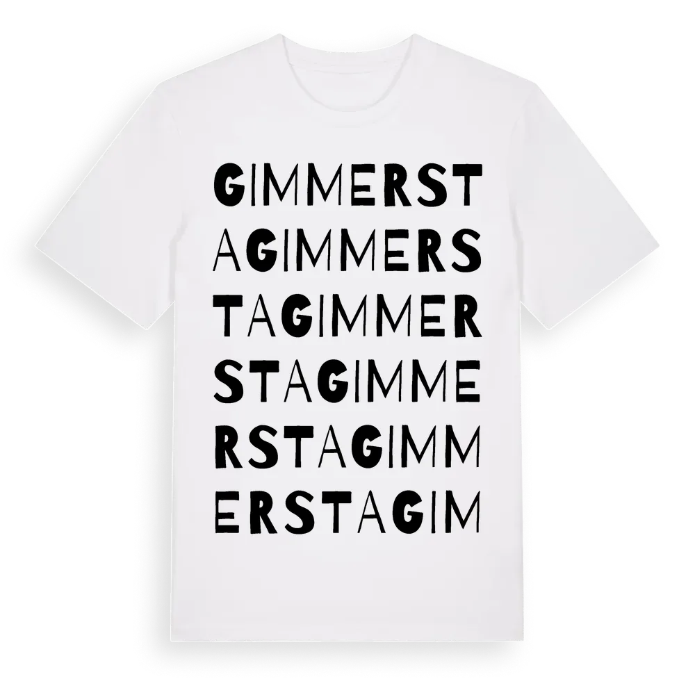 En ordlek byggd på Gimmerstas namn. Subtilt och klurig – ett motiv som bara de som verkligen känner platsen fullt ut förstår. Premium bomull, unisex – från byn Gimmersta i Stockholms län.